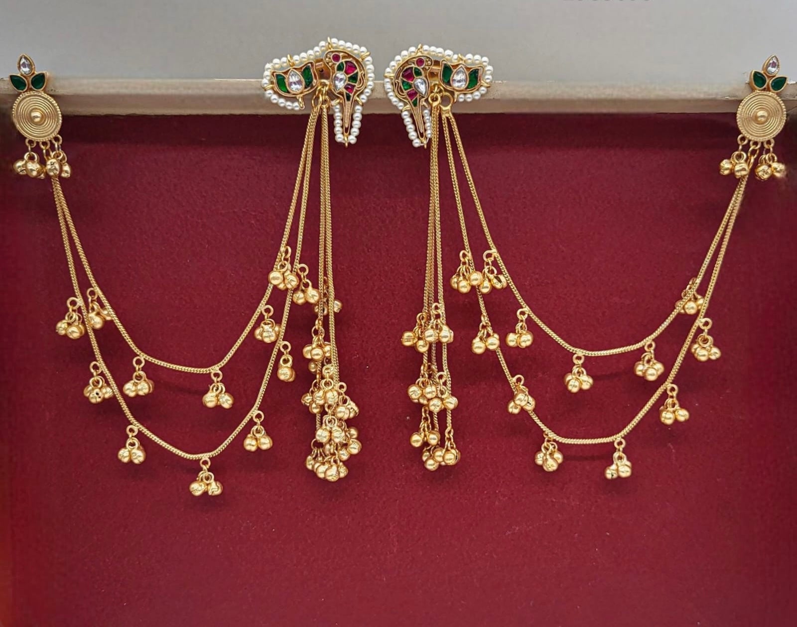 Kashmiri Golden Kundan Earrings ā Traditional Ethnic Statement Jewelry