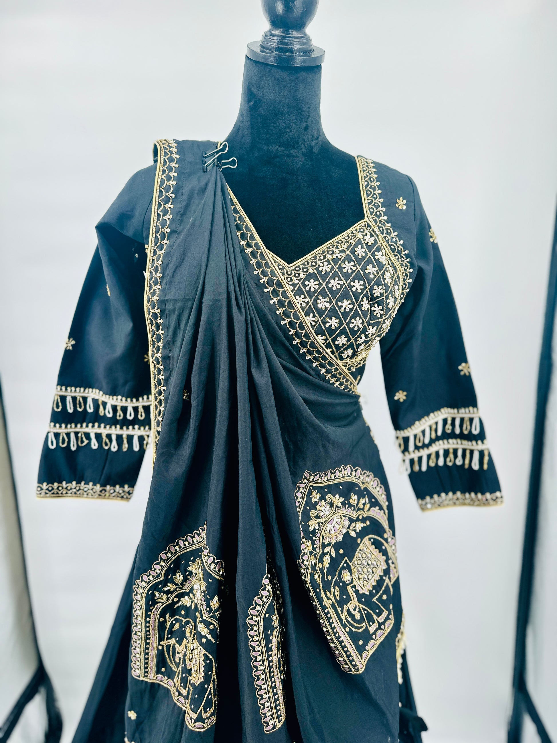 Black Muslin Silk Handwork Lehenga Choli – Royal 9–12 Mtr Flair